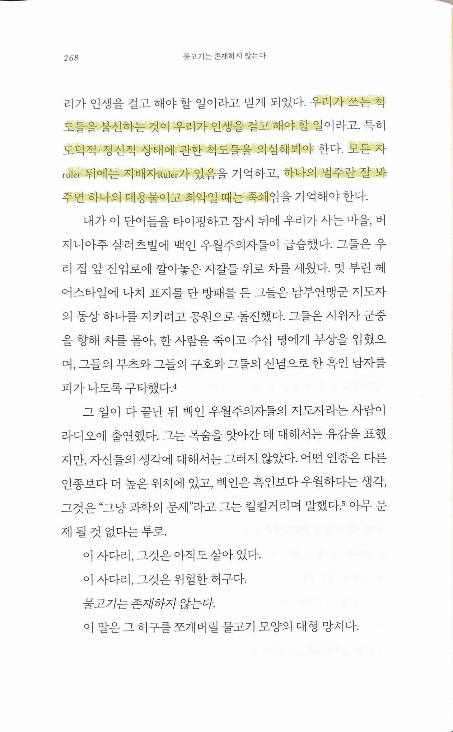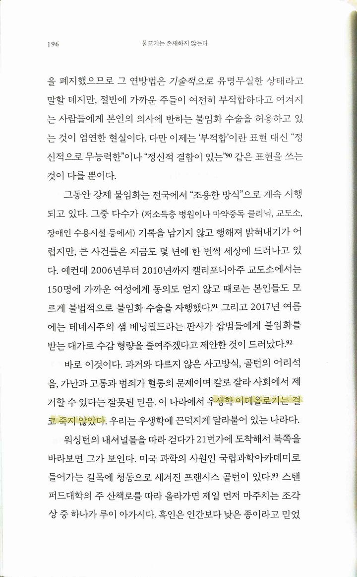 ★★★★☆ 2023.05.17 물고기가 인간의 자의적인 분류라는 깜짝 놀랄 사실과, 이 (존재하지 않는) 물고기라는 종의 분류를 주도한 인물이 스탠포드 대학과 관계가 있고, 우생학을 미국에 보급하는데 앞장선 문제의 인물이며, 그로 인해 미국이 얼마나 영향을 받았는지(그래서 비록 사문화되었다고는 하지만, 아직도 법에 남아있다는) 여러가지 놀라운 사실을 알게 되었다. 생선을 좋아하는데, 앞으로 생선을 먹을 때마다 이 책이 생각나지 않을까 하는 좀 수준 낮은 생각도 들고, 우생학이라는 지금은 사라졌다고 생각한 인종차별이 사실은 아직도 그림자를 드리우고 있다는 불쾌한 사실까지 많은 생각이 들었다. 그래도 이 책이 출판된 이후 스탠포드/인디애나 대학의 데이비드 조던 이름이 붙은 건물이 이름이 변경되었다는 에필로그를 보면 미국의 힘이 조금은 남아있단 생각도 든다.