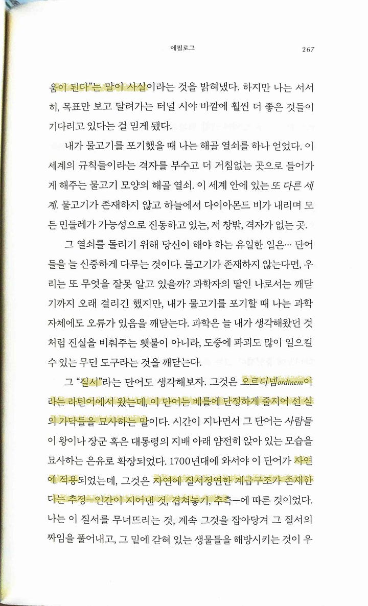 “질서”… 오르디넴 ordinem이라는 라틴어에서 왔는데, 이 단어는 베틀에 단정하게 줄지어 선 실의 가닥들을 묘사하는 말… 자연에 적용… 자연에 질서정연한 계급구조가 존재한다는 추정-인간이 지어낸 것, 겹쳐놓기, 추측-에 따른 것