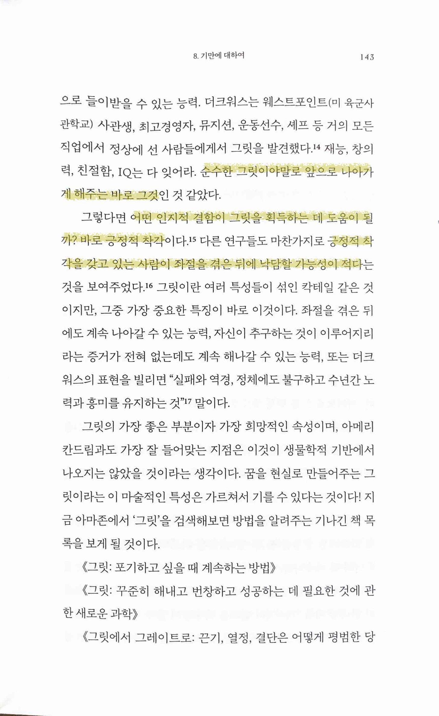 어떤 인지적 결함이 그릿을 획득하는 데 도움이 될까? 바로 긍정적 착각… 긍정적 착각을 갖고 있는 사람이 좌절을 겪은 뒤에 낙담할 가능성이 적다
