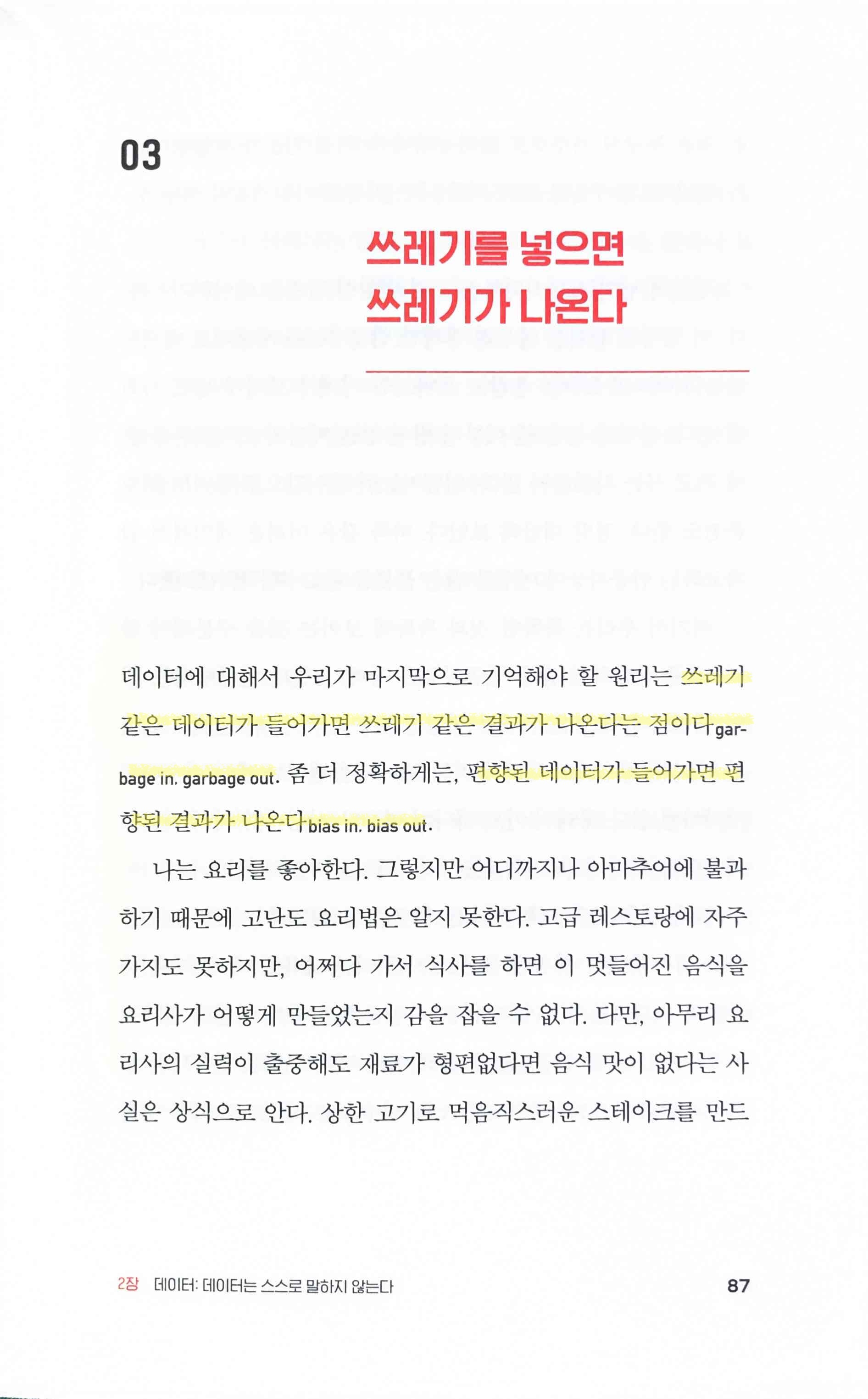 garbage in, garbage out보다는bias in, bias out이 훨씬 부드럽고 이야기할 때 좋겠단 생각이 든다. 특히 computer science에 대한 지식이 없는 사람에게는 garbage란 용어가 공격적으로 들릴 수 있겠단 생각을 예전에는 못 했었다.