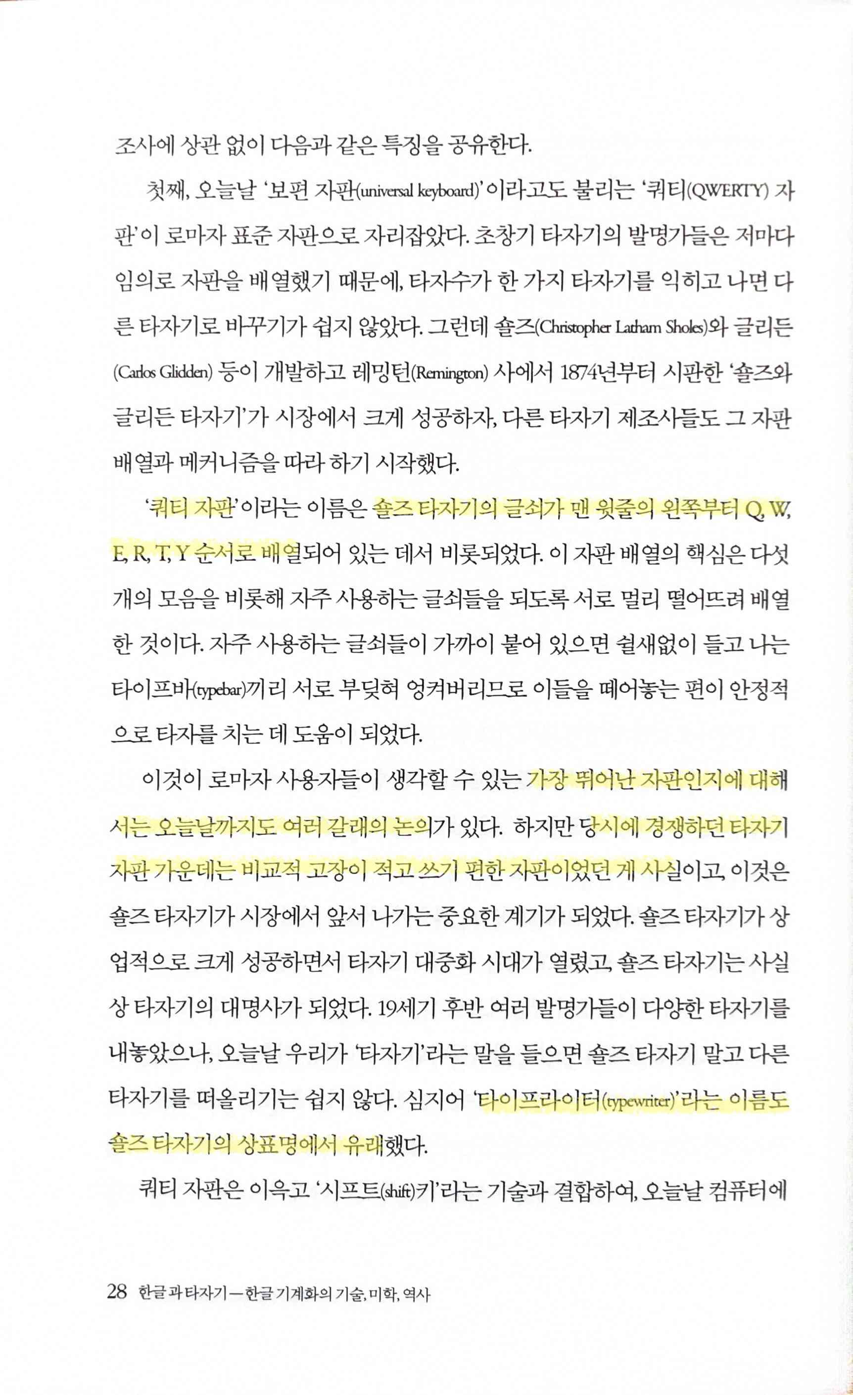 숄즈 타자기가 바로 우리가 이야기하는 qwerty 자판의 원조인데, typewriter 유래도 역시 이거였는지는 처음 알았음