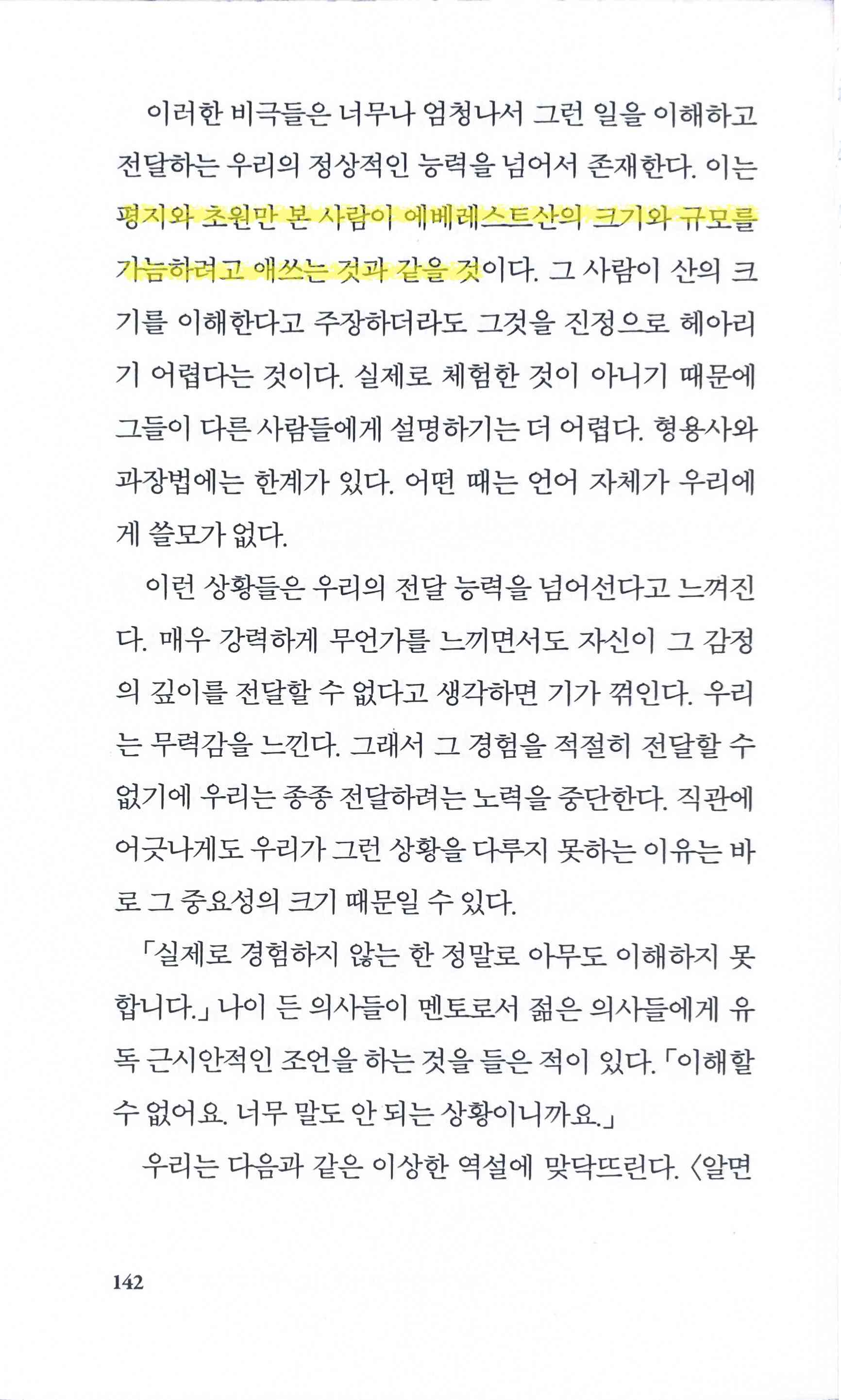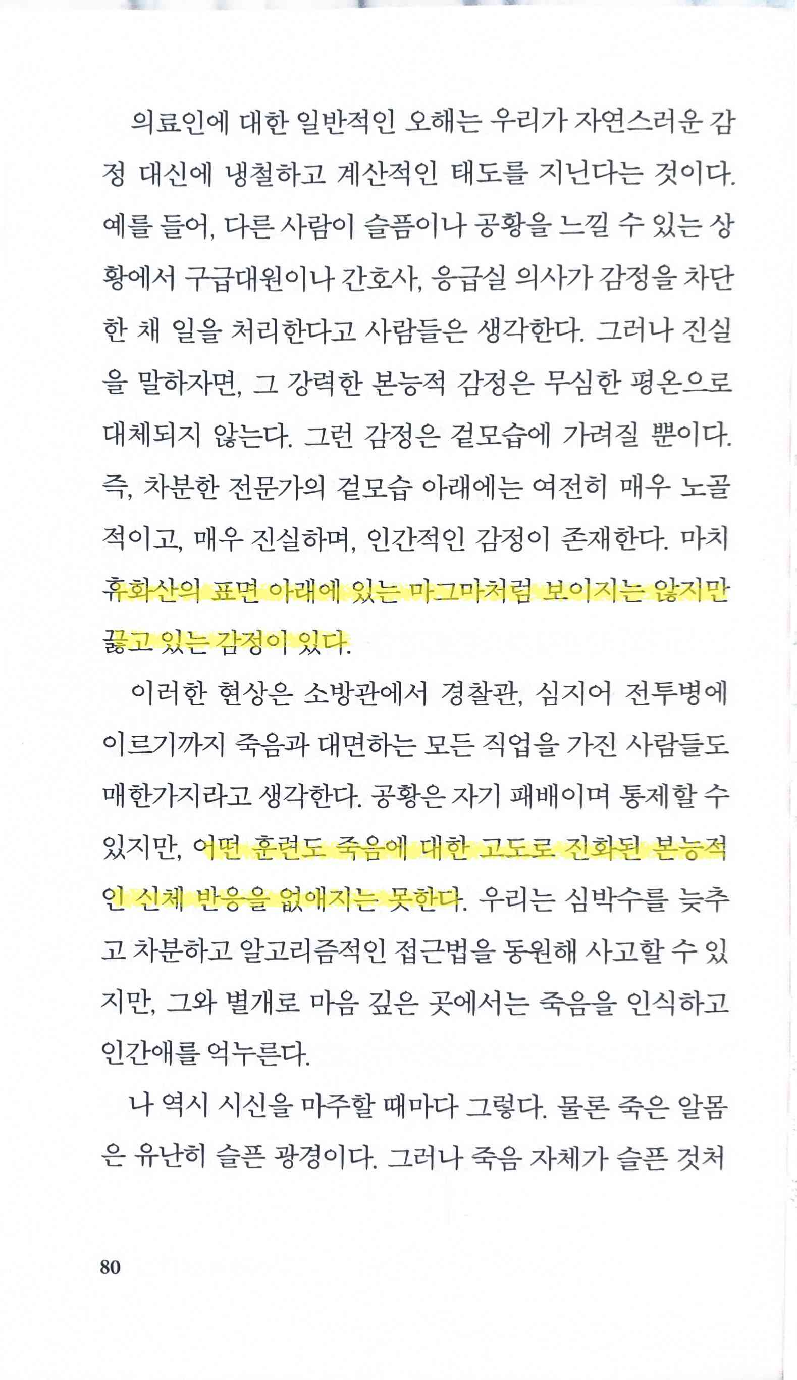 작년 말부터 올해 초까지 ‘죽음’을 화두로 삼은 여러 책을 읽었는데, 우연히 이 책을 발견하고 읽게 되었다. 이 책은 가족의 사별로 인한 상실감을 전면에 내세우기는 책은 아니고, ‘인생의 의미’와 유사하게 삶의 태도를 탐색하는 데 초점을 맞춘다. 저자는 응급의학과 의사라는 직업상 하루에도 수차례 죽음을 마주해, 현장에서 겪은 다채로운 사례를 통해 우리가 어떤 마음으로 오늘을 살아가야 할지 풀어낸다.