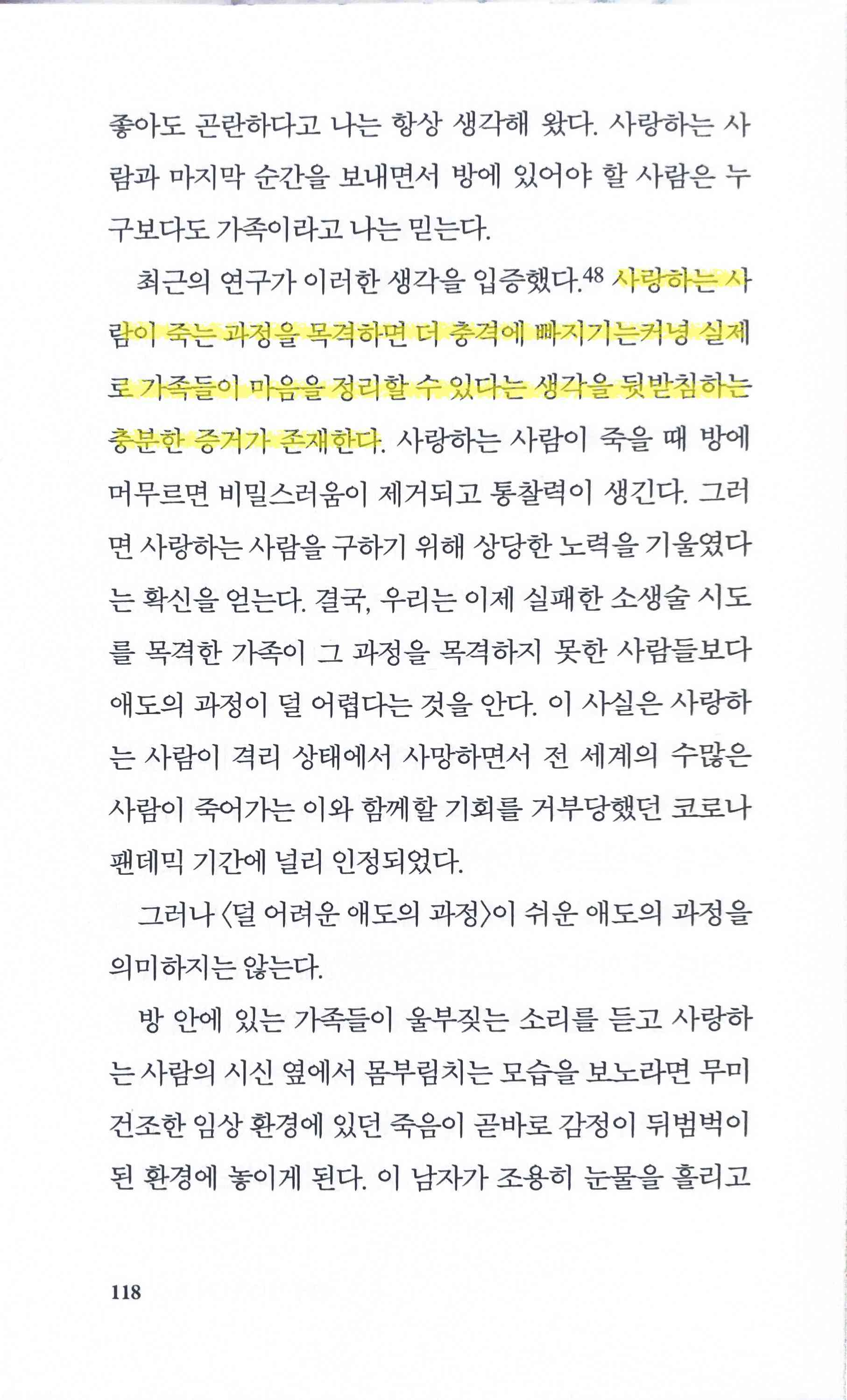 사랑하는 사람이 죽는 과정을 목격하면 더 충격에 빠지기는커녕 실제로 가족들이 마음을 정리할 수 있다는 생각을 뒷받침하는 충분한 증거가 존재한다