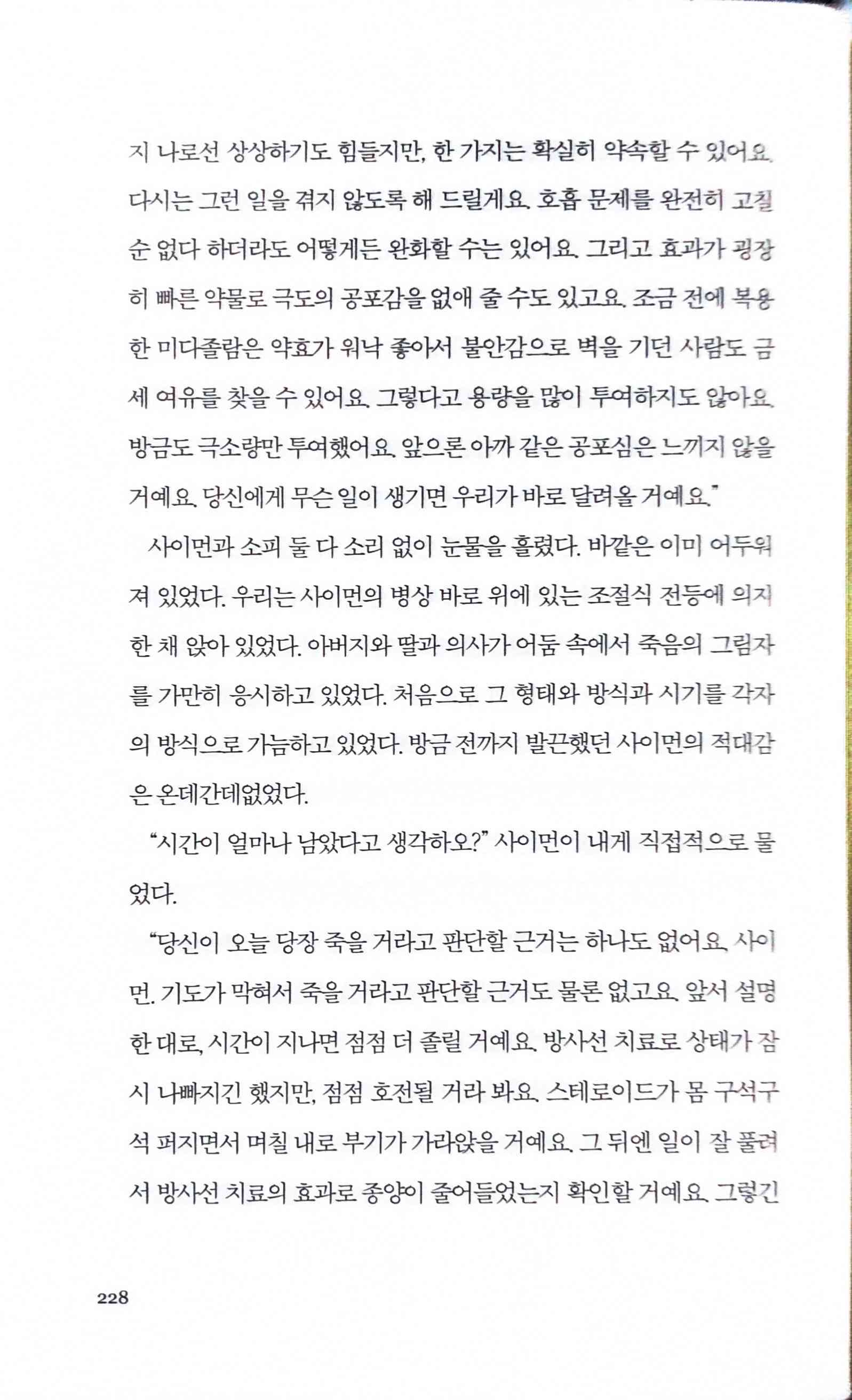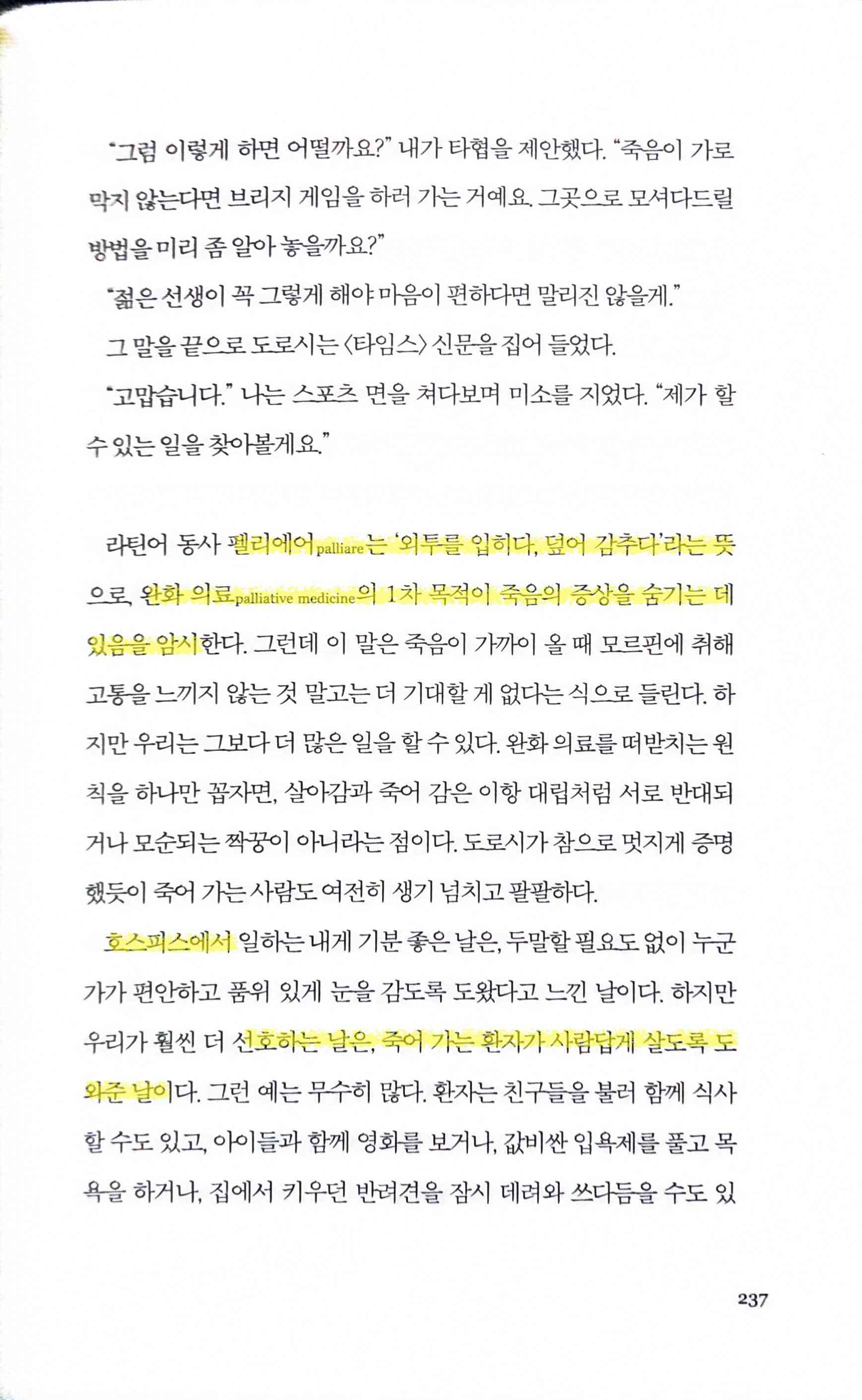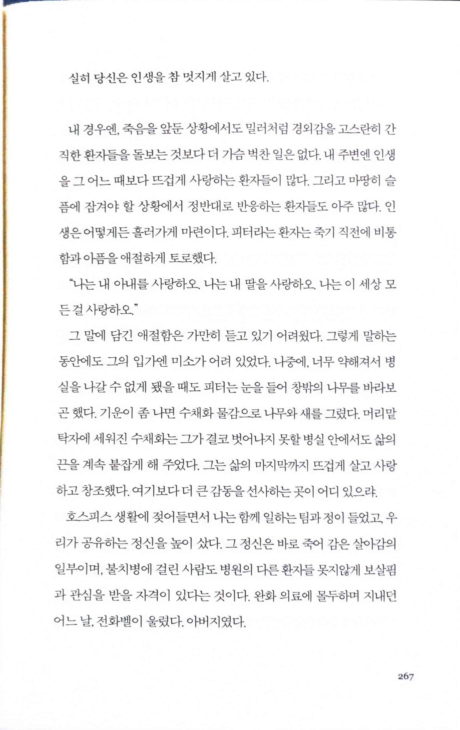 pp224~229 호스피스에서 만난 환자 중 한 명, 은퇴한 경찰인 사이먼과의 이야기. communication에 대한 깊은 통찰을 알 수 있다