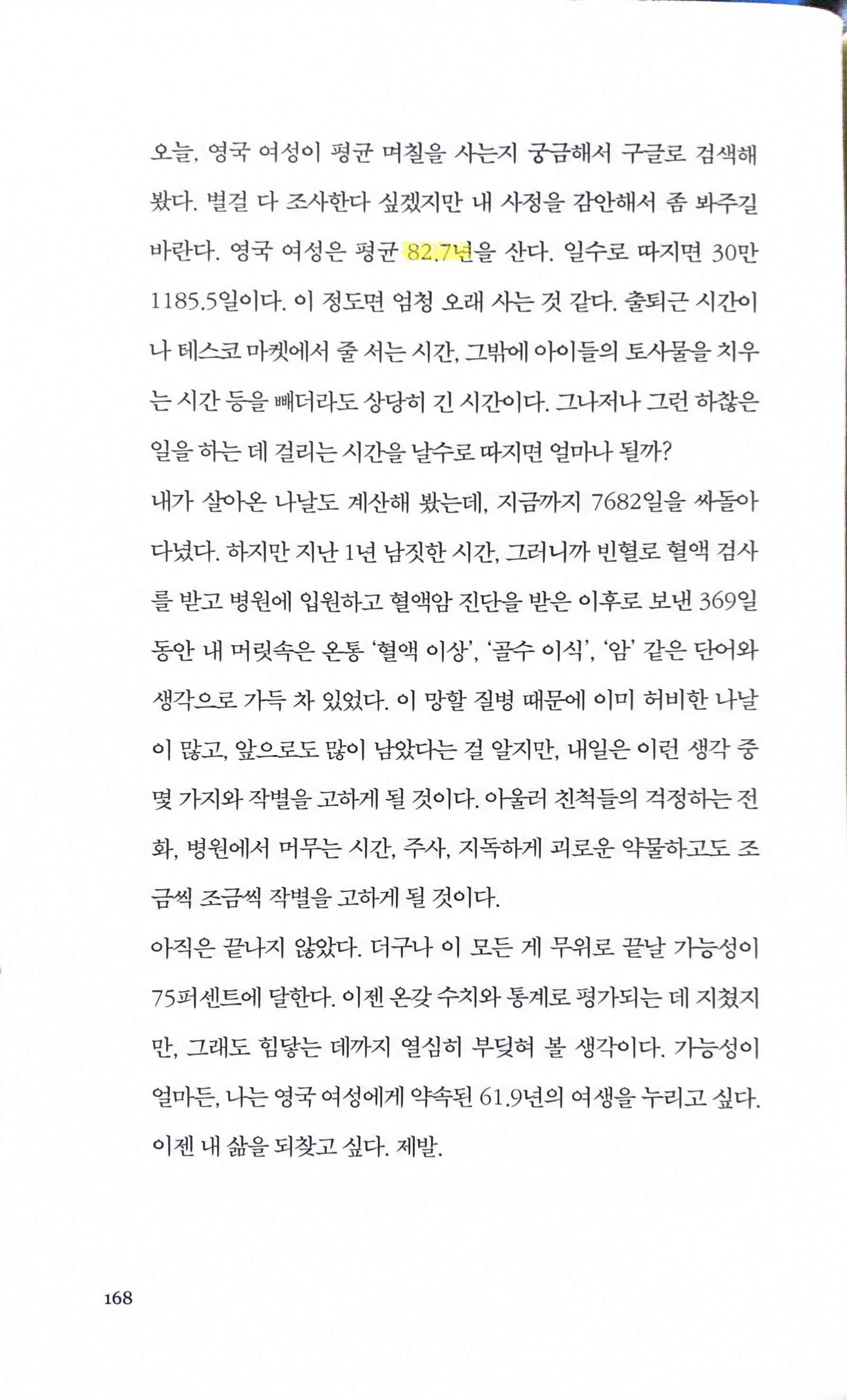 감상을 깨긴 하지만.. 82.7년은 아마 3만 1185.5일일 것이다. 27년이 대략 10,000일이기 때문에. 참고로 82 * 365 = 29930