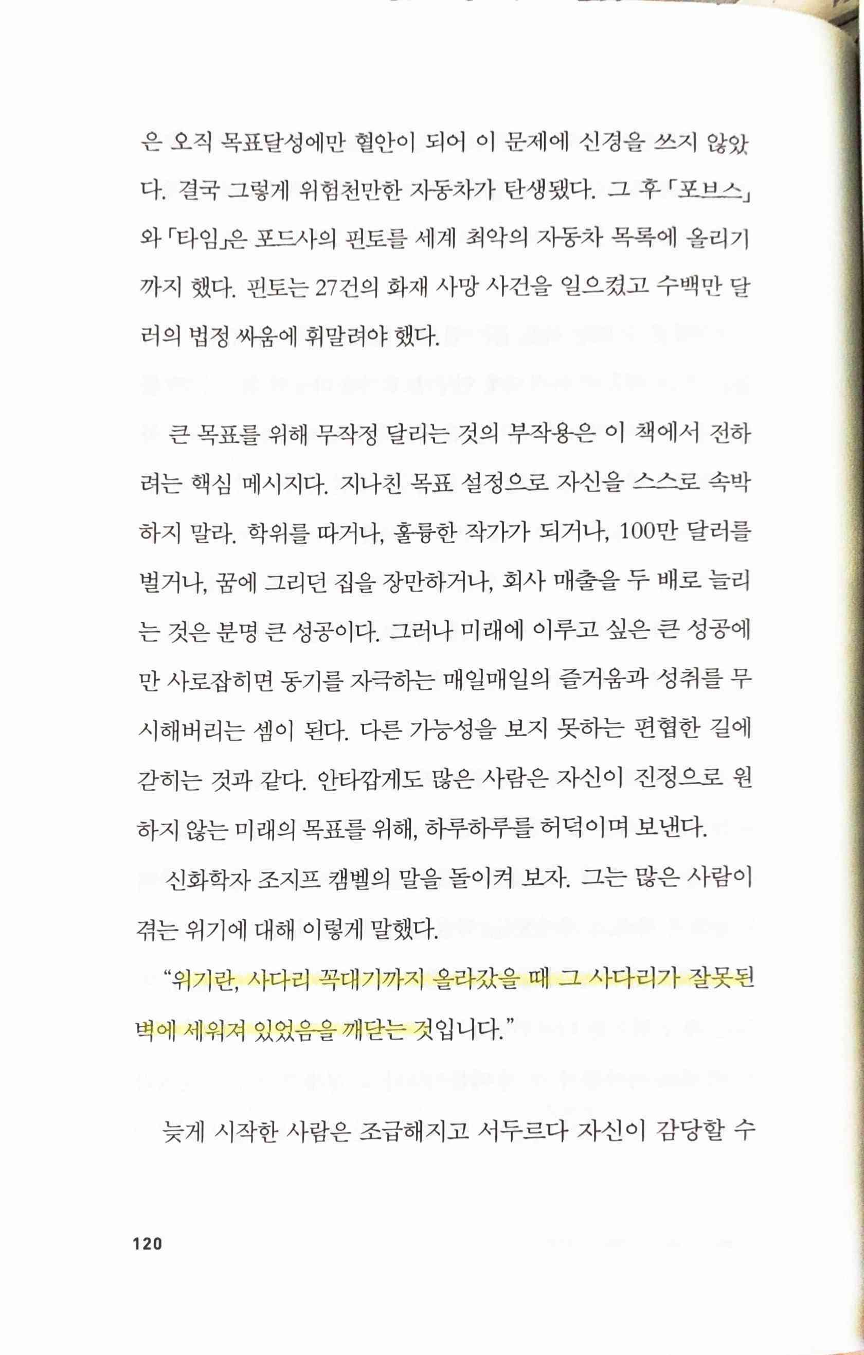 신화학자 조지프 캠벨 "위기란, 사다리 꼭대기까지 올라갔을 때 그 사다리가 잘못된 벽에 세워져 있었음을 깨닫는 것입니다."