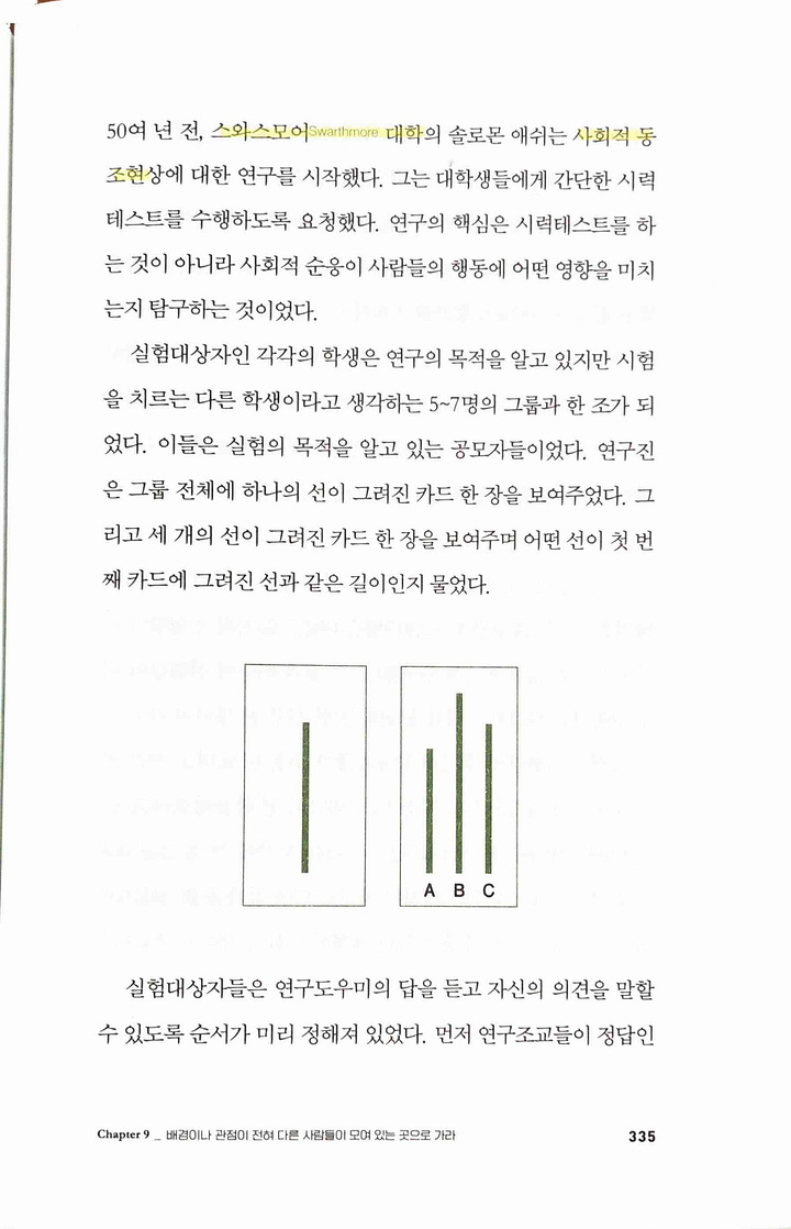 스와스모어 Swarthmore 대학 솔로몬 애쉬 사회적 동조현상에 대한 연구