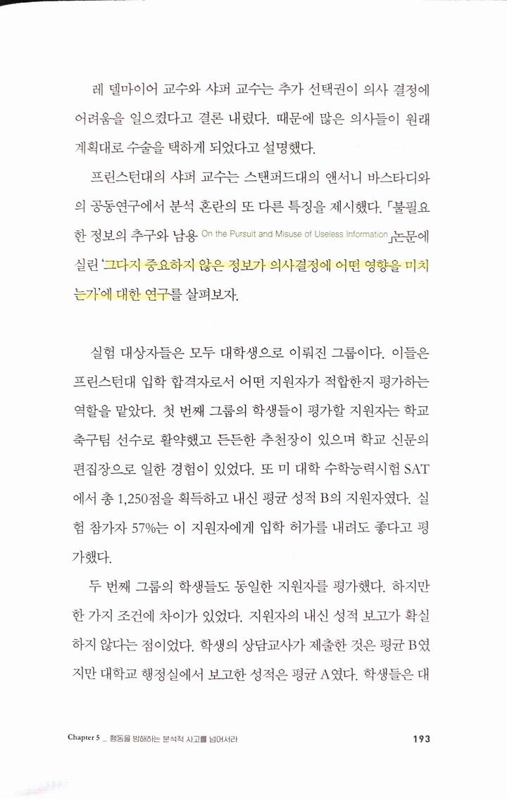 '그다지 중요하지 않은 정보가 의사결정에 어떤 영향을 미치는가'에 대한 연구