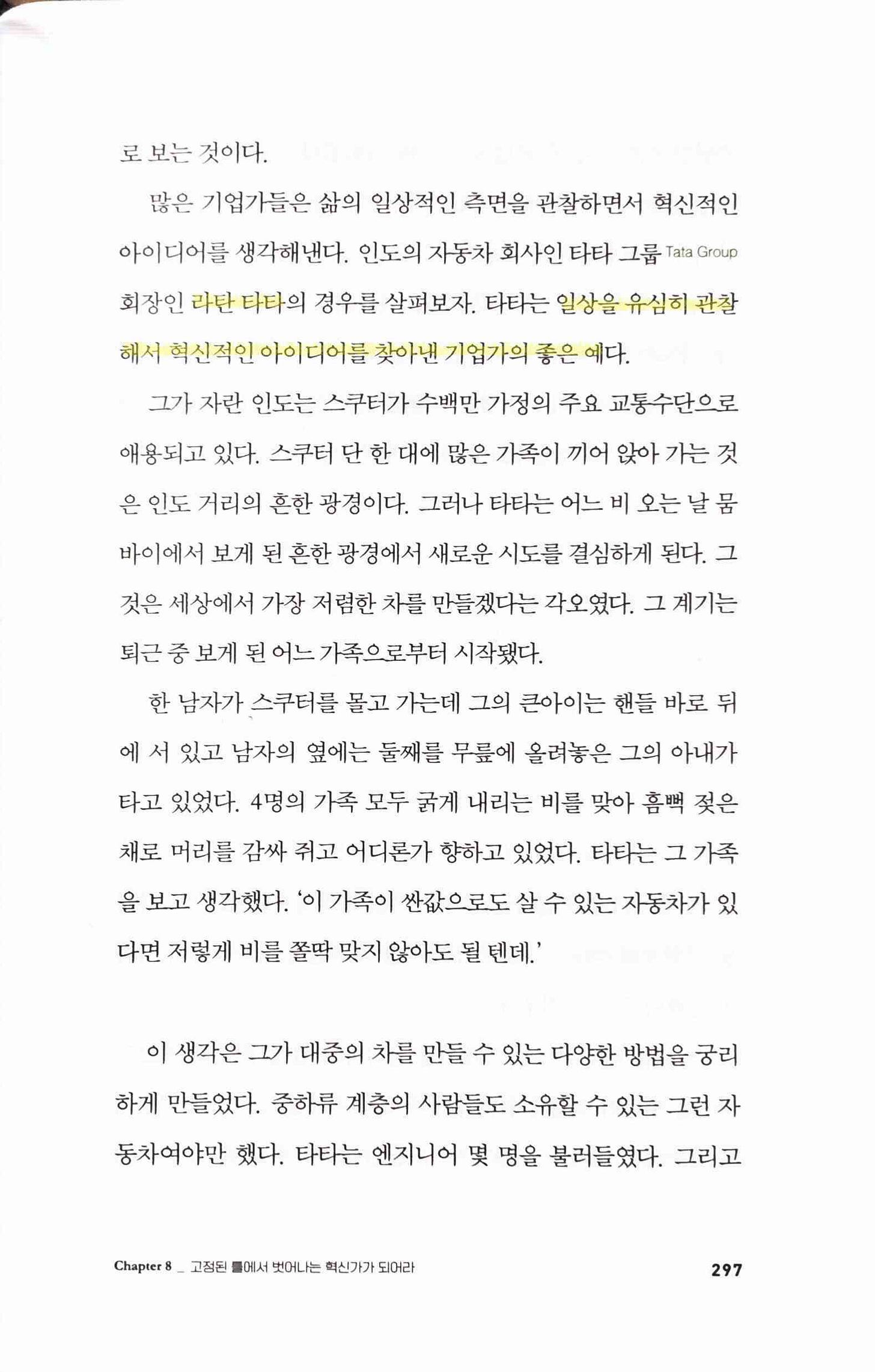 라탄 타타 일상을 유심히 관찰해서 혁신적인 아이디어를 찾아낸 기업가의 좋은 예