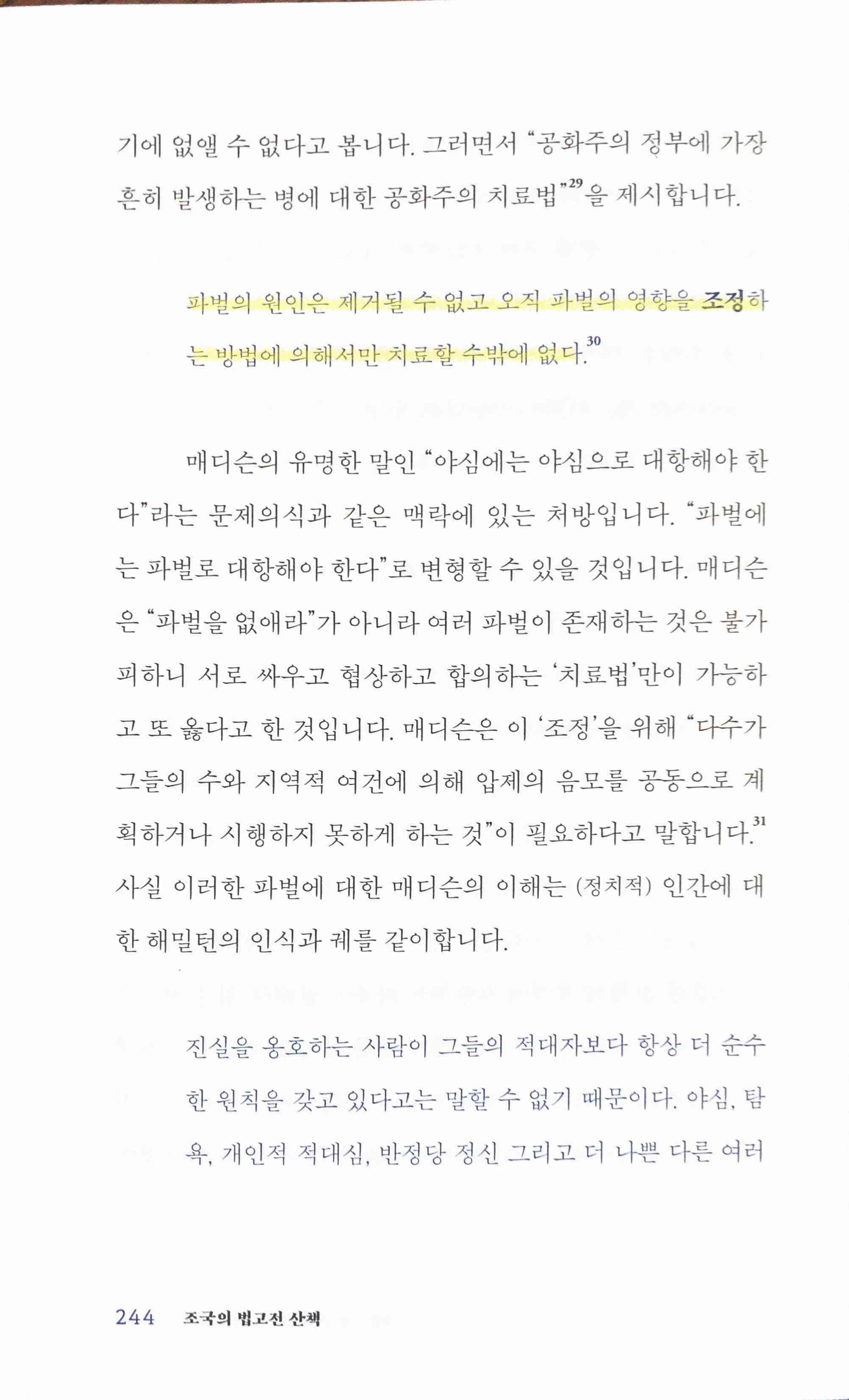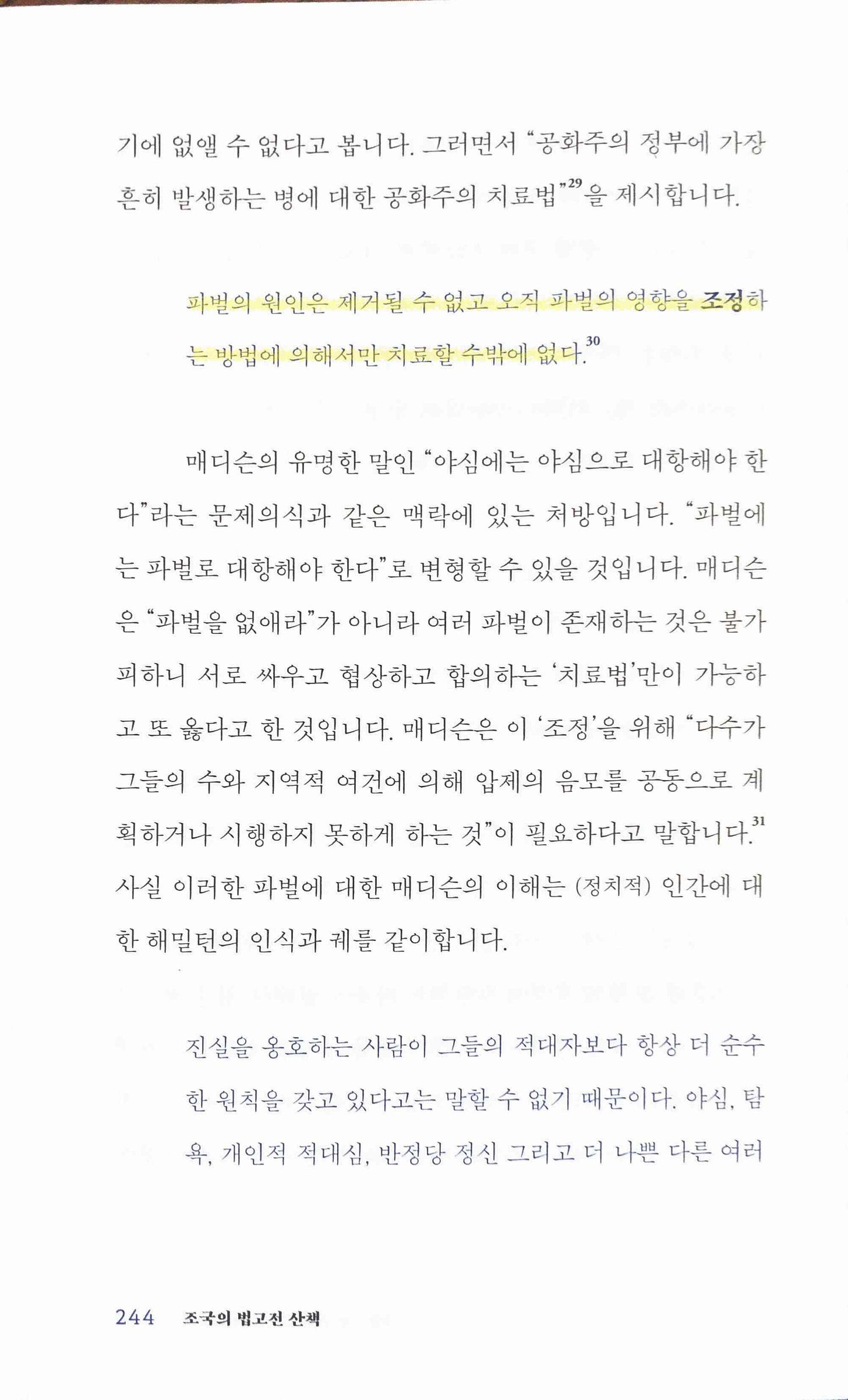 파벌의 원인은 제거될 수 없고 오직 파벌의 영향을 조정하는 방법에 의해서만 치료할 수밖에 없다.