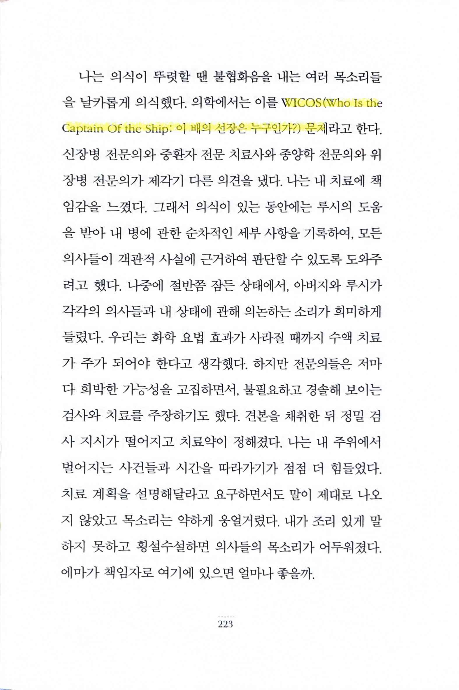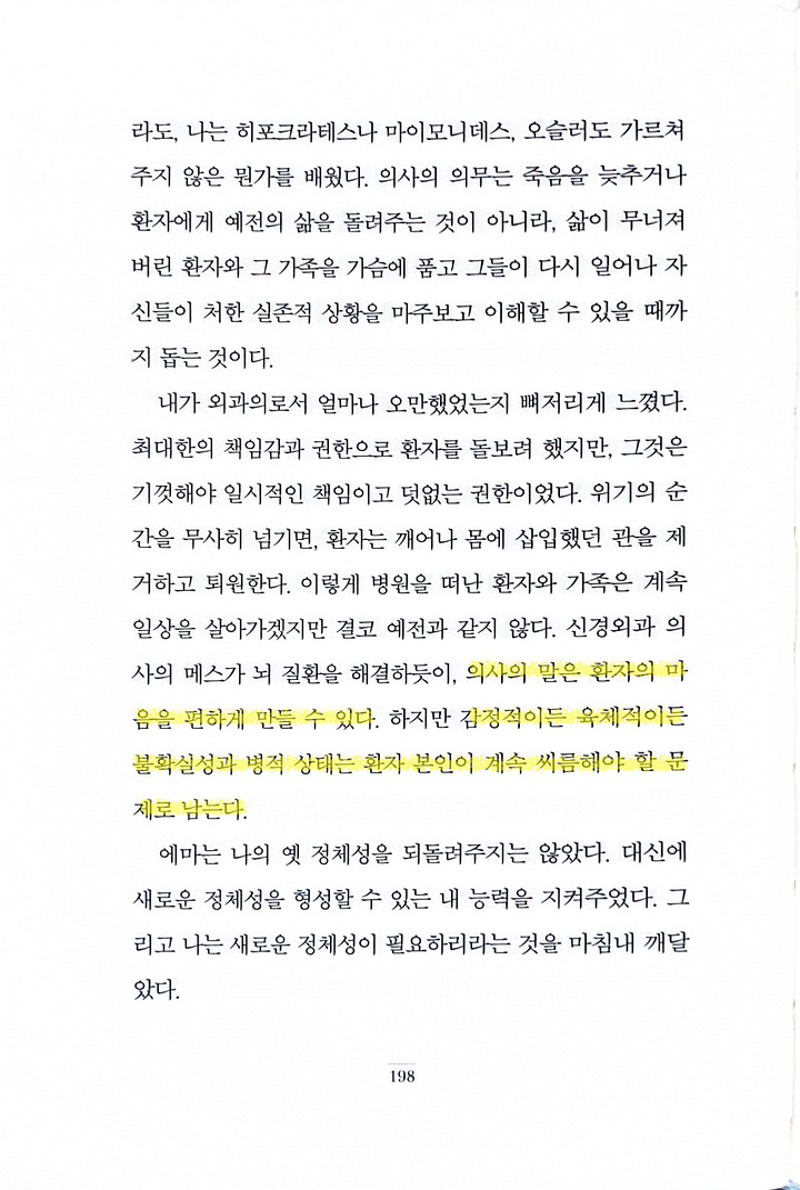 pp197~198 누구나 그렇지만 이렇게 죽음을 앞에 둔 상황이라고 해도 결국 자신에 대한 인식은 스스로 찾고 정립해야 한다